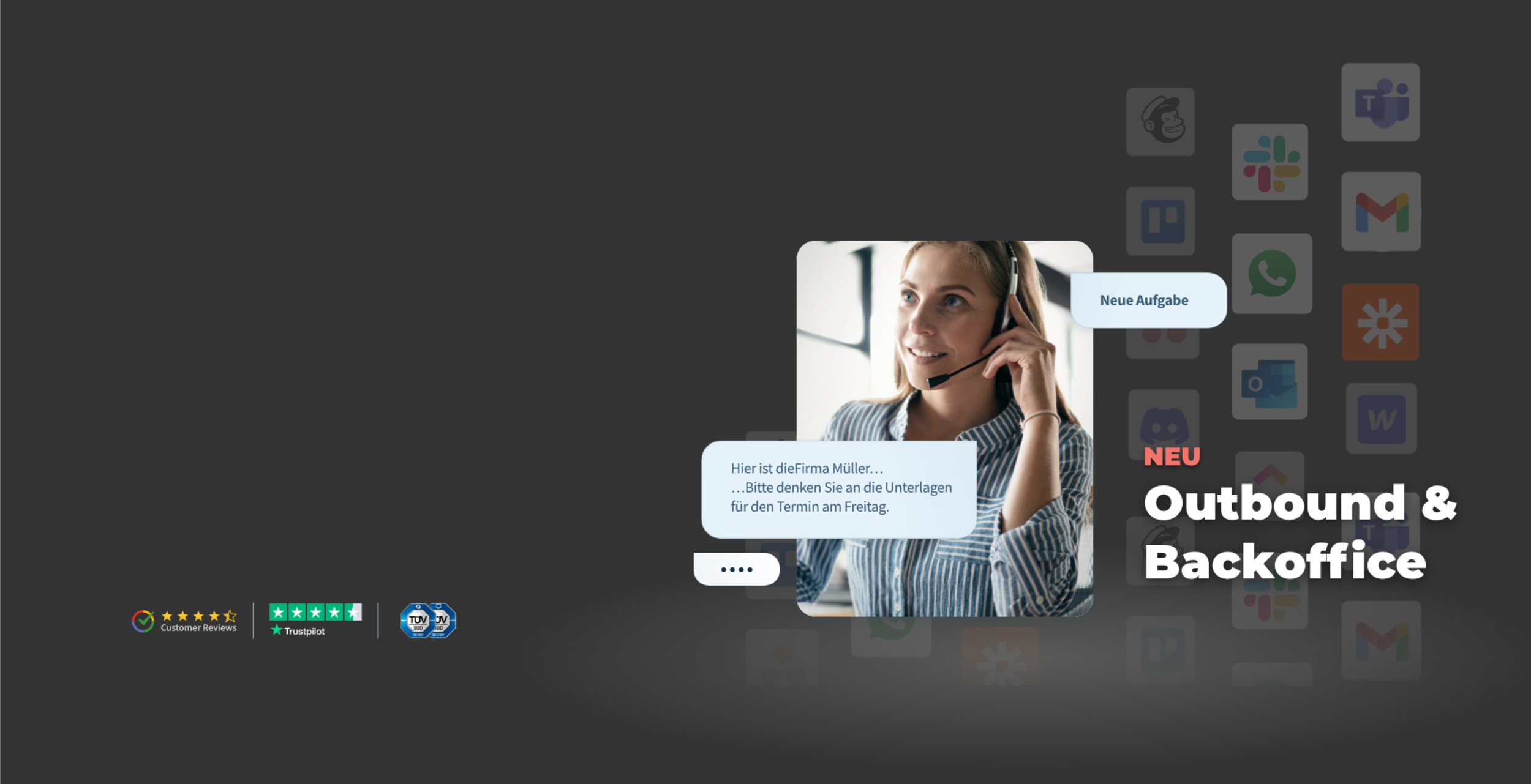 Mit dem Outbound- und Backoffice-Service rufen wir Kunden und Interessenten aktiv in Ihrem Namen an und erweitern damit unser Portfolio von der reaktiven Anrufannahme zu aktiven Anrufen in Ihrem Firmennamen. Dazu gehören Rückrufe bei Kunden, Terminerinnerungen, -verschiebungen oder -bestätigungen, die Abfrage fehlender Informationen sowie die Nachverfolgung von z.B. Angeboten. Auch bei organisatorischen Gesprächen mit Geschäftspartnern oder Dienstleistern unterstützen wir diskret und zuverlässig. Alle Anrufe erfolgen auf Grundlage datenschutzkonformer Prozesse und lassen sich transparent steuern. Ihr Team wird entlastet und kann sich auf das Wesentliche konzentrieren: das Tagesgeschäft.