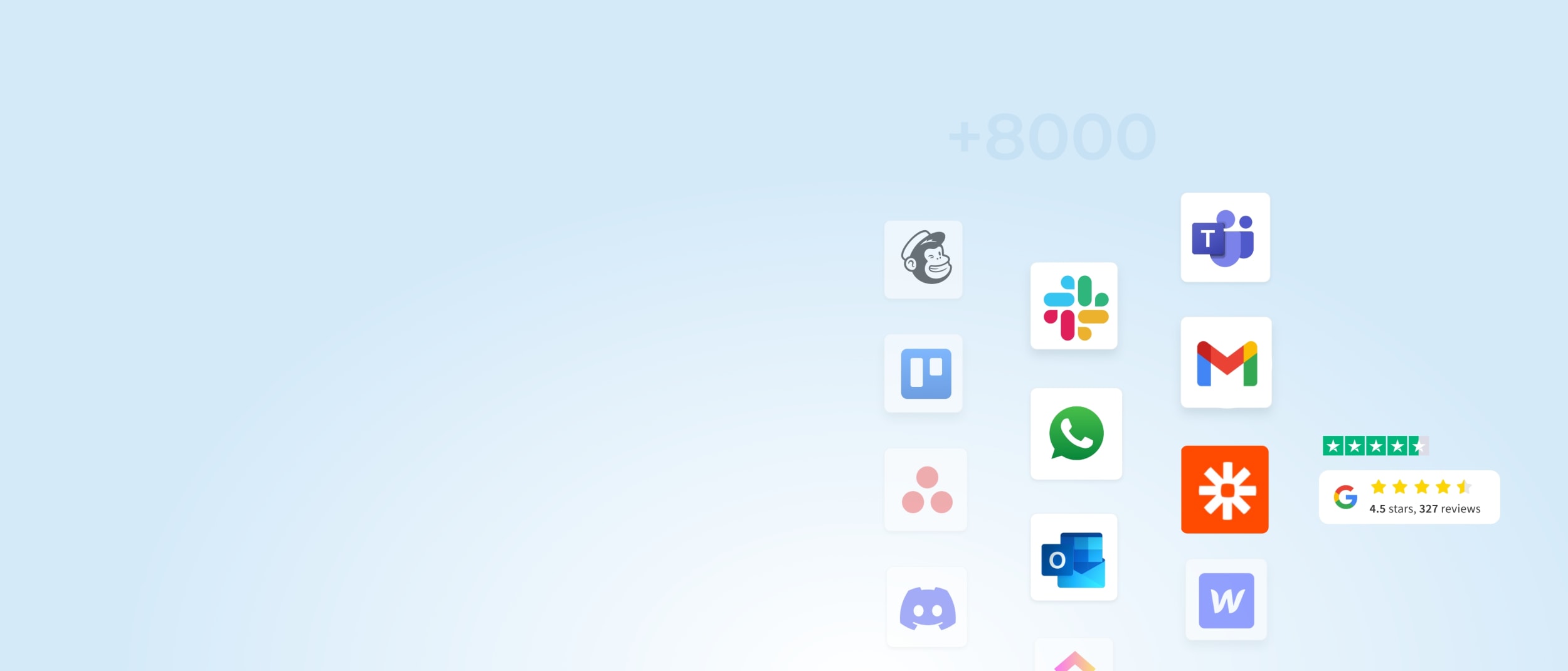 - Kompatibel mit über 8.000 Anwendungen via Zapier